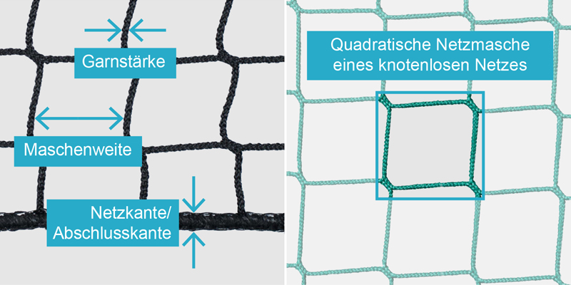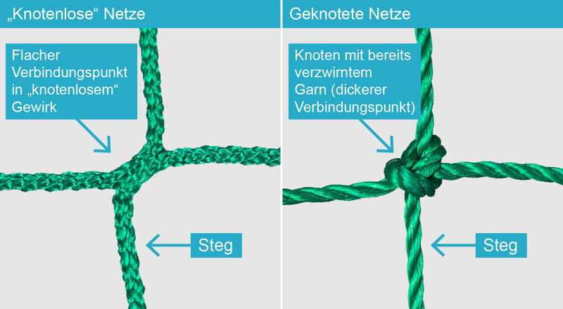 Geknotetes Netz mit Randverstärkung und knotenloses Gewirk im Vergleich