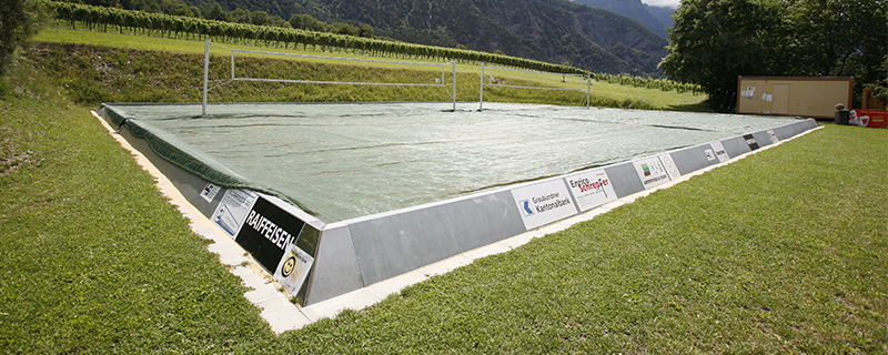 Als Winterabdeckung gegen Schmutz und Witterungseinflüsse - unsere Abdeckplanen aus dem bewährten PE-Gewebe schützen insbesondere großflächige Beachvolleyballfelder zuverlässig vor Verunreinigungen. Die Fertigung erfolgt generell mit einem umlaufenden Hohlsaum inkl. innenliegender Einzugsschnur für Kettenbeschwerungen. Durch das relativ geringe Flächengewicht können selbst große Anlagen problemlos abgedeckt werden.